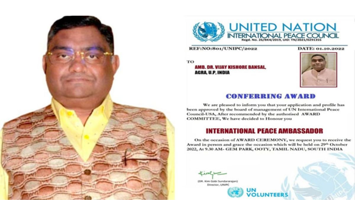 डॉ. विजय किशोर बंसल ने समाज सेवा के क्षेत्र में वर्ल्ड बुक ऑफ रिकार्ड में किया नाम दर्ज